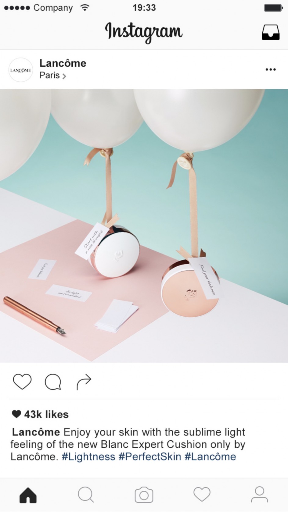 Afin de de relancer le cushion star de la marque sur le marché asiatique, nous nous sommes appuyés sur une big idea "ENJOY YOUR SKIN" pour faire la démonstration que l'application du cushion peut devenir un geste beauté simple et agréable qui protège et rafraichit 24h tout en gardant une tenue optimale.